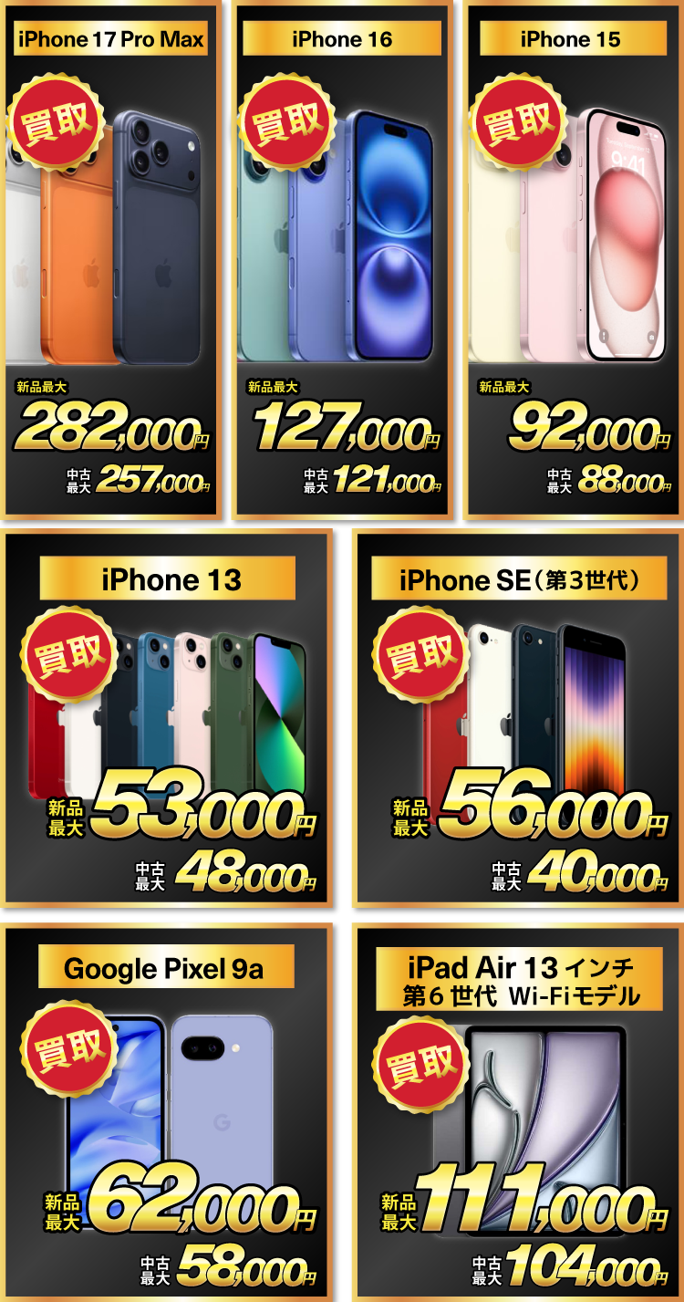 iPhoneやAndroidスマホ、iPadを高価買取中